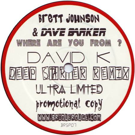 BRSP07 – Brett Johnson & Dave Barker – Where Are You From ? (David K Deep Starter Remix) – (12″, S/Sided, Ltd, Promo)