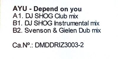 DRIZ3003-2 – Ayu* – Depend On You – (12″, Promo, W/Lbl)