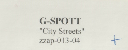 ZZAP013-04 – G-Spott – City Streets – (12″, S/Sided, Promo, W/Lbl)