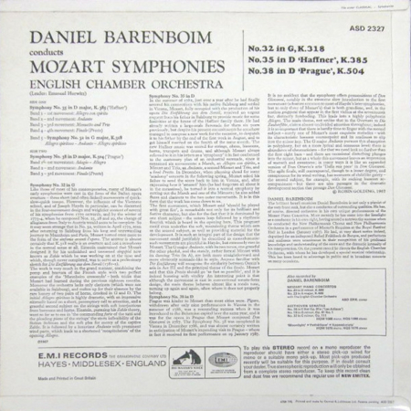 ASD 2327 – Daniel Barenboim, The English Chamber Orchestra* – Mozart Symphonies: No. 32 In G, K.318; No. 35 In D, ‘Haffner’ K.385; No. 38 In D, ‘Prague’ K.504 – (LP)