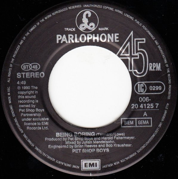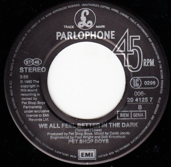 ℗ 1990 The copyright in this sound recording is owned by Pet Shop Boys Partnership under exclusive licence to EMI Records Ltd.
