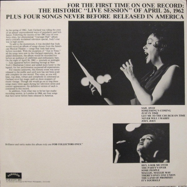 Tracks A1-B2 recorded live at New York Manhattan Center, April 26, 1962. Tracks B3-B6 from what would be her last recording session, in London 1964 never before released in U.S.