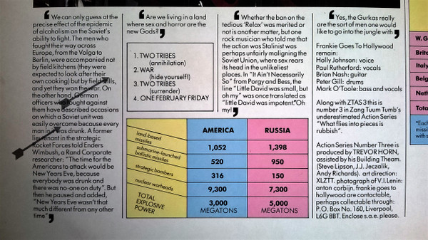 The tracklisting on the disc label doesn’t have version titles “Annihilation” and “Surrender” for the two “Two Tribes” versions. But the A and B-side are titled “Annihilation” and “Surrender” respectively.