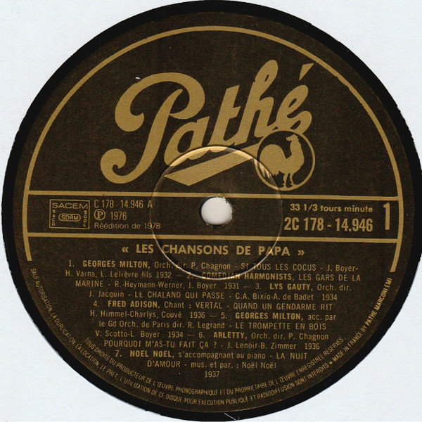 B1 78 t ℗ 1933 du film “Le roi des Resquilleurs” | B2 78 t ℗ de la Revue des Nouveautés “V’la l’travail” | B3 78 t ℗ 1938 du film “Feux de joie” | B4 78 t ℗ 1938 | B5 78 t ℗ 1937 | B6 78 t ℗ 1939 | B7 78 t ℗ 1939