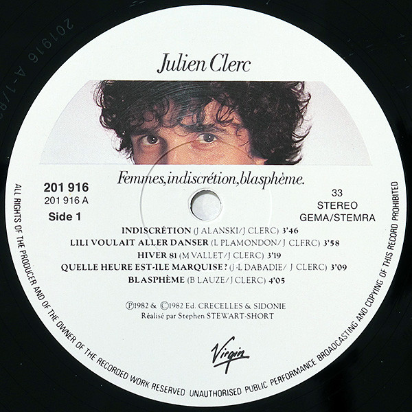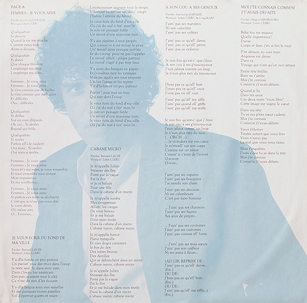 On inner sleeve: “© 1982 Editions: Crécelles et Sidonie sauf “A Son Cou A Ses Genoux” Editions Crécelles, Sidonie et Rondor”