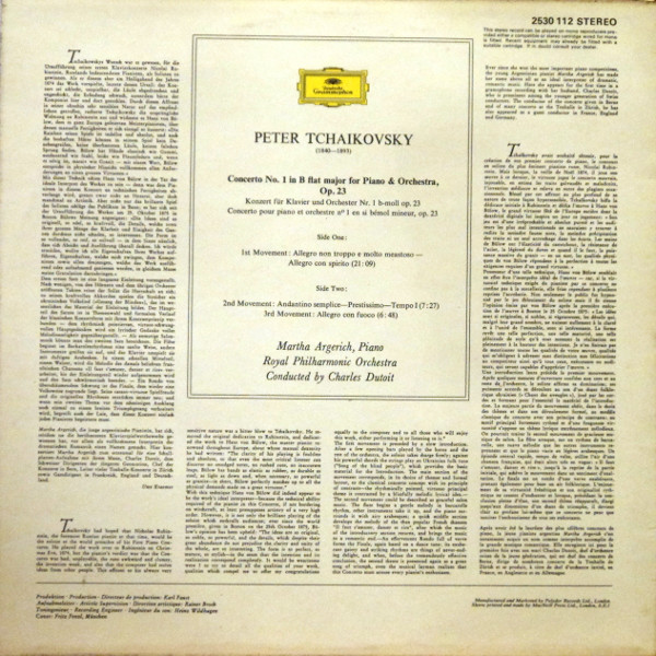 Spine: Stereo Tchaikovsky: Concerto No. 1 In B Flat Minor For Piano And Orchestra, Op. 23 2530 112
