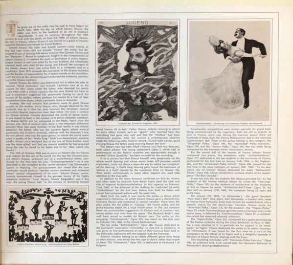 Sleeve Cover: “Beim Cotillon” colorcarving from a drawing by Stanislaus Rejchan, 1897. The picture on the from is a cut down partial image of the larger original, more of which is featured on the english stereo issue of this album.