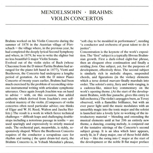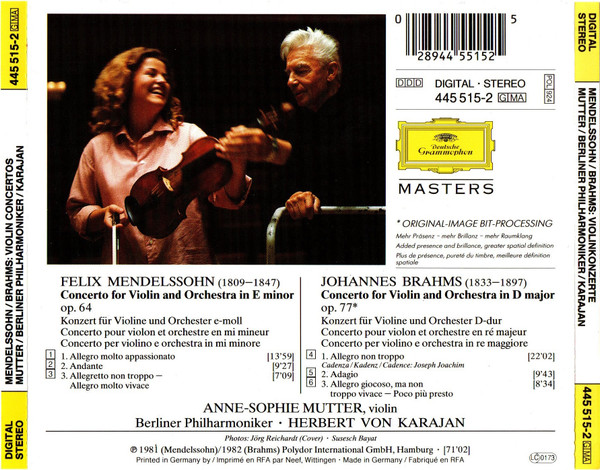 Recordings: Berlin, Philharmonie, 9/1980 (Mendelssohn) & 9/1981 (Brahms).