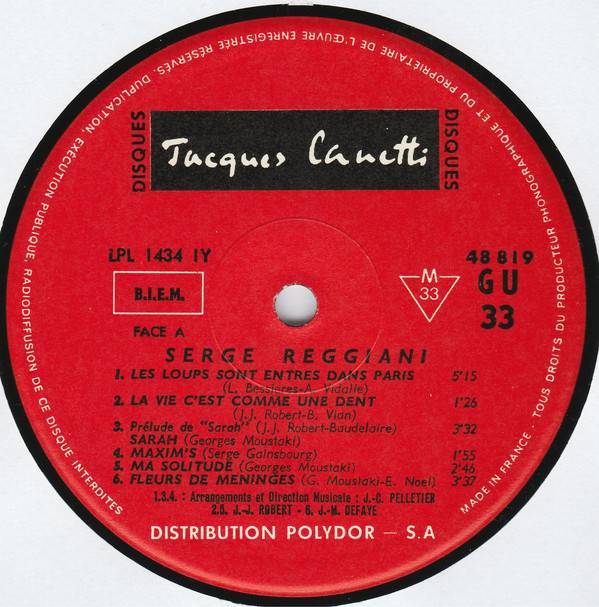 On labels: DISTRIBUTION POLYDOR-S.A. MADE IN FRANCE