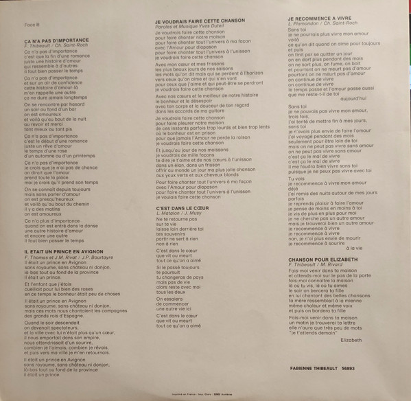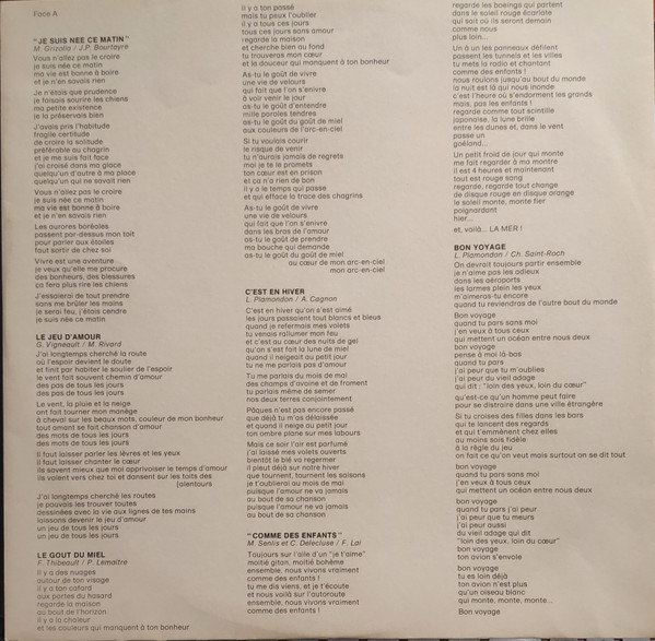 Lyrics printed on innersleeve