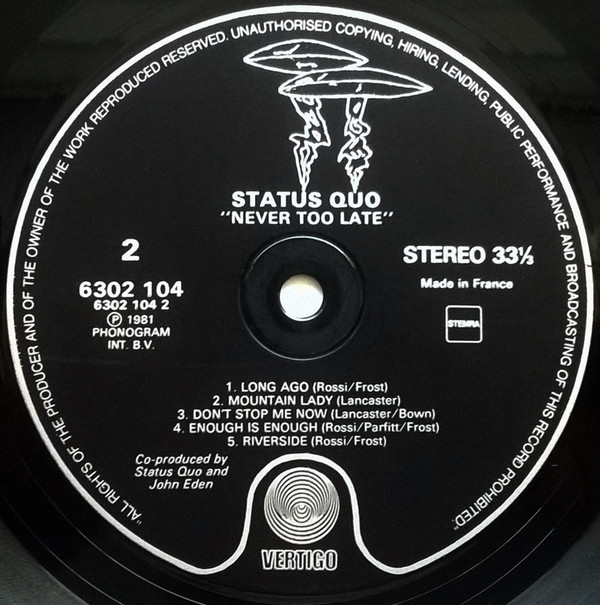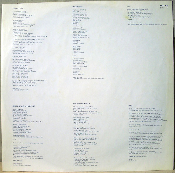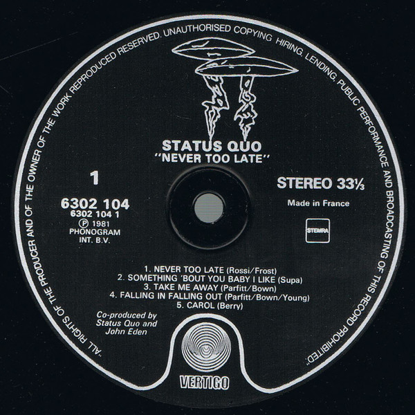 Matrix / Runout 6302 104 2Y 1 ℗ 1981 670 1 1 POLYGRAM I.M 06 A A