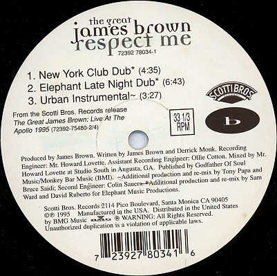 “From the Scotti Bros. release [url=https://www.discogs.com/James-Brown-Live-At-The-Apollo-1995/release/5723992]The Great James Brown: Live At The Apollo 1995[/url]”