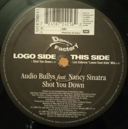 Samples of “Bang Bang (My Baby Shot Me Down)” by Nancy Sinatra.