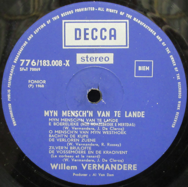 Title on labels: Myn Mensch’n Van Te Lande