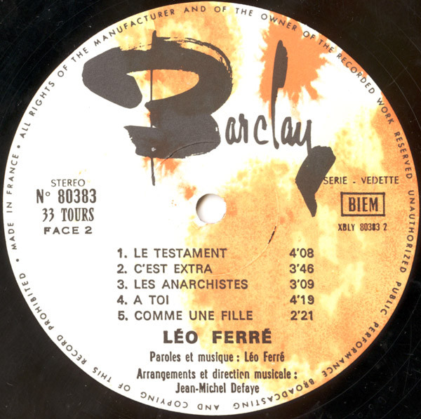 This reissue is different by his “XBLY 80383 2” on side B and “N° 80383” printed differently / “33 TOURS”