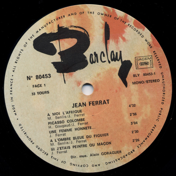 In order to distinguish this album from other Jean Ferrat albums that also have no proper title it is referred to as A Moi L’Afrique, the title of the first song on the album.