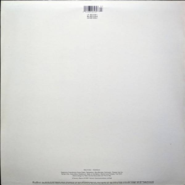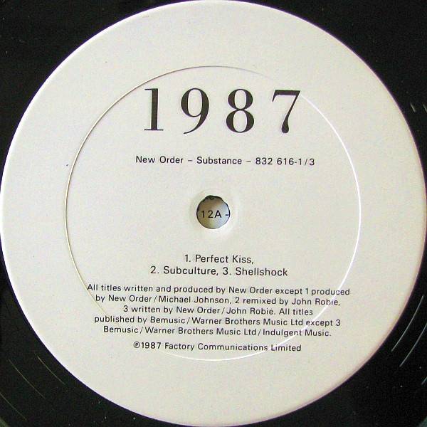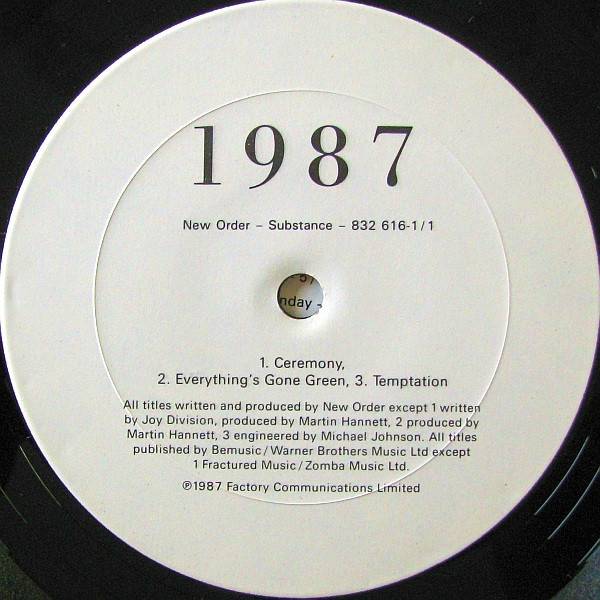 Some copies came with a 4-panel insert/order form advertising the “SUBSTANCE 1987: THE VIDEO” VHS/Beta videocassette release, with a cost of $29.95, and “available no sooner than October 30, 1987”. The eleven videos that this insert indicates were to be included are “True Faith, “Bizarre Love Triangle”, “State Of The Nation”, “Shellshock”, “Subculture”, “Perfect Kiss”, “Thieves Like Us”, “Confusion”, “Blue Monday”, “Temptation”, and “Everything’s Gone Green”. However the video collection was not released until 1989 and contained seven videos including two for singles that were released after Substance 1987 (“Touched By The Hand Of God” and “Blue Monday 1988”).