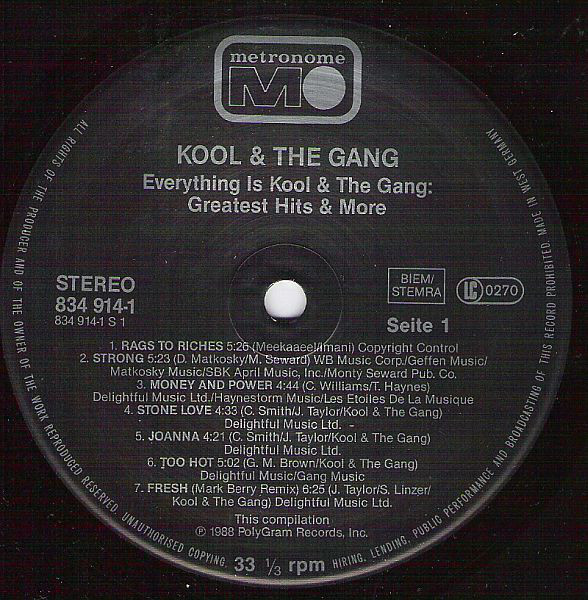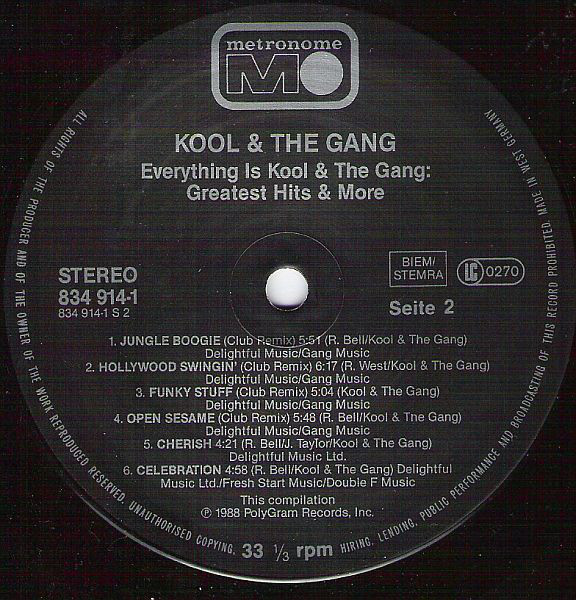 Title reads as ‘Everything’s Kool & The Gang – Greatest Hits & More’ on front cover & spine.