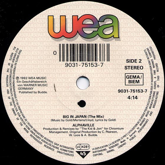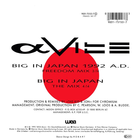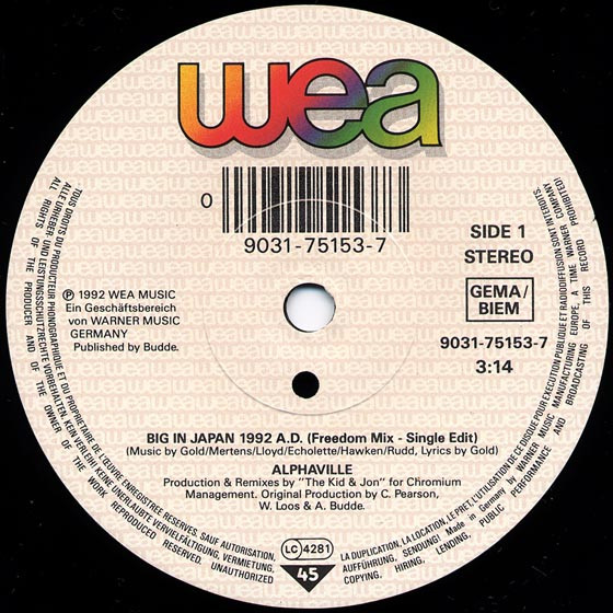 – “Big In Japan 1992 A.D. (Freedom Mix – Single Edit)” on the A-side label.