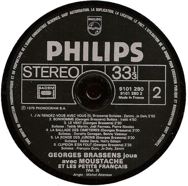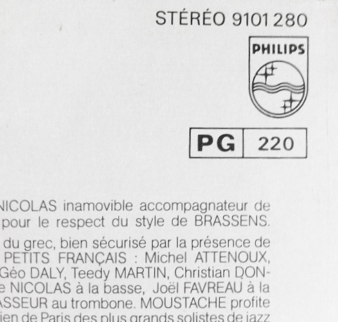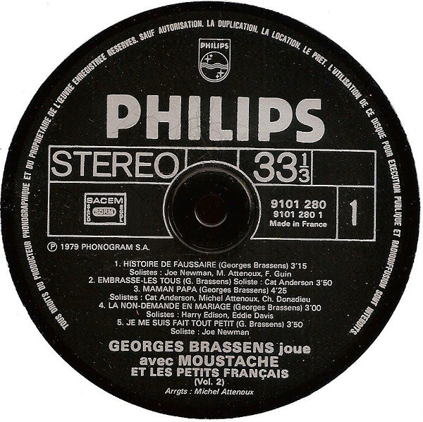 Printed by Polygram Industries Messageries, not by Imprimerie JAT, Saint-Quentin as [url=https://www.discogs.com/Georges-Brassens-Joue-Avec-Moustache-2-Et-Les-Petits-Fran%C3%A7ais-Joe-Newman-Eddie-Davis-Harry-Edison-C/release/17038134]this similar release.[/url]