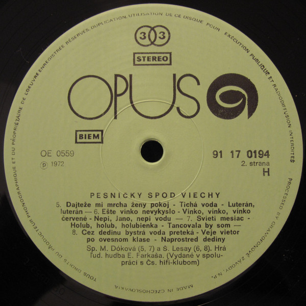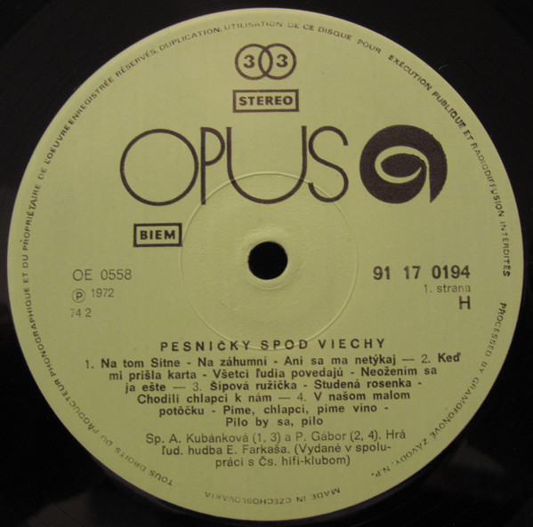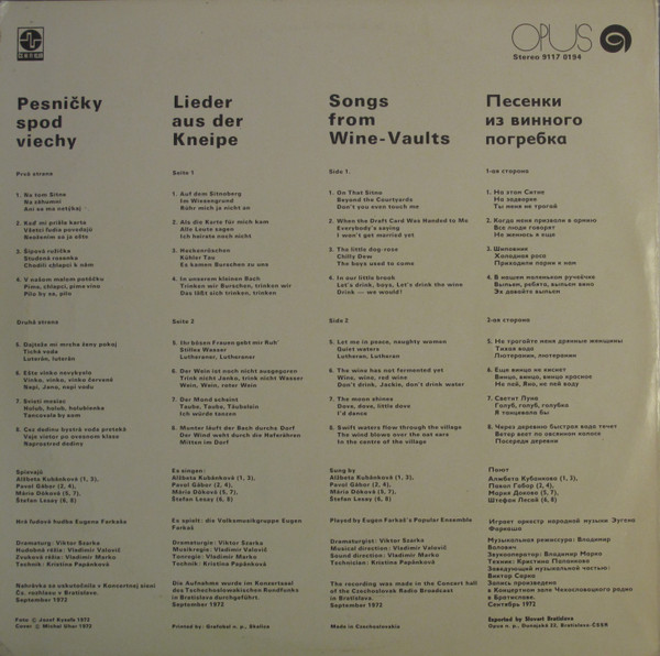 tracklist and credits in Slovak, German, English and Russian