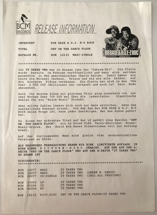 Artist name are spell “Rob Base & D.J. E-Z Rock” on the cover, but as “Rob Base & DJ E-Z Rock” on labels.
