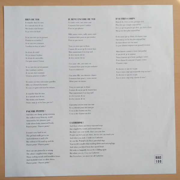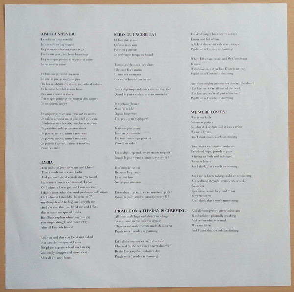 Inner insert with printed lyrics