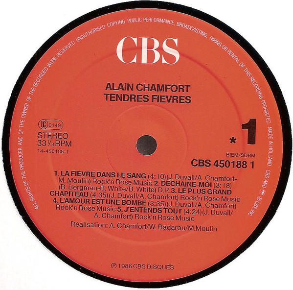 Phonographic Copyright (p) CBS Disques