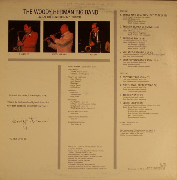 Recorded live at the Concord Jazz Festival, Concord Pavilion, Concord, California, August, 15, 1981.