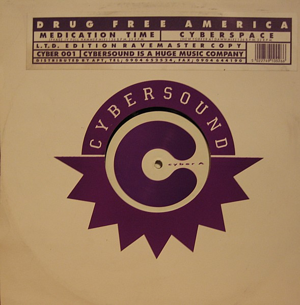 Stickered ‘Cybersound’ company sleeve with die-cut hole on one (front) side. Blank side of vinyl has white label sticker