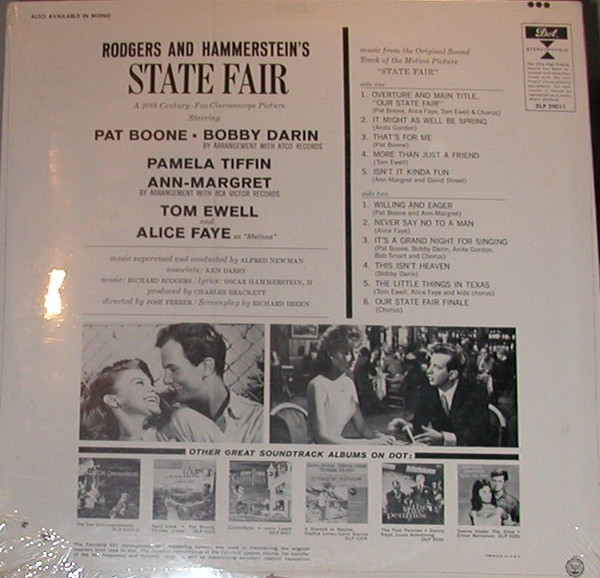 DLP 29011, DLP 29,011 – Pat Boone / Bobby Darin / Pamela Tiffin / Ann-Margret* / Tom Ewell / Alice Faye – Rodgers And Hammerstein’s State Fair – (LP, Album)