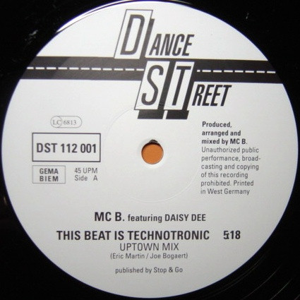 Single: [url=https://www.discogs.com/MC-B-Featuring-Daisy-Dee-This-Beat-Is-Technotronic/release/80000]DST 107001[/url] and on