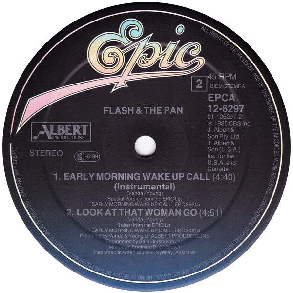 Flash And The Pan appears on sleeve; Flash & The Pan appears on labels.