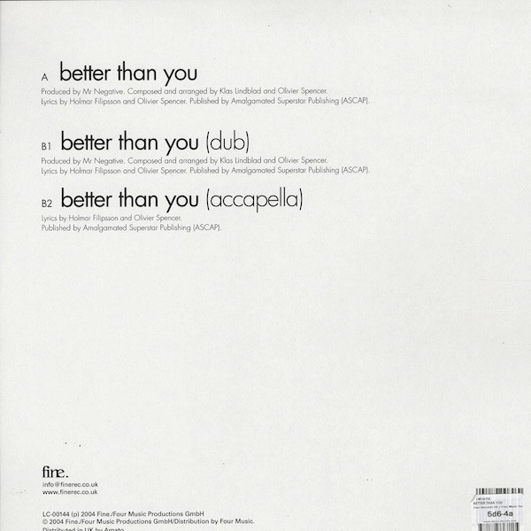 © 2004 Fine./Four Music Productions GmbH/Distribution by Four Music.