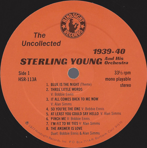 ℗ 1977 Hindsight Records Inc. P.O. Box 7114 R.Burbank Calif 91510