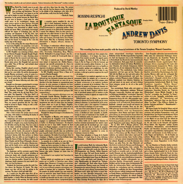 Sleeve Notes are in English, French and German