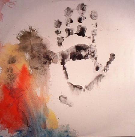 cover art “Me, Myself, Good” powerful self-portrait signed with own hand print by Michael, The Silverback Gorilla Who Used Sign Language (1973-2000)