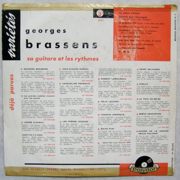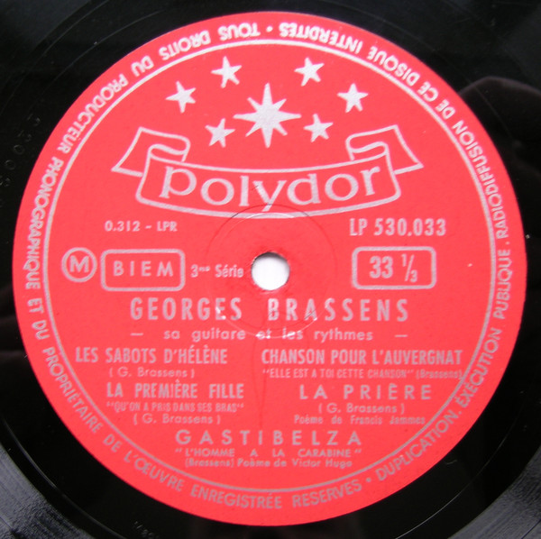 Artist credited as “Georges Brassens, sa guitare et les rythmes.”