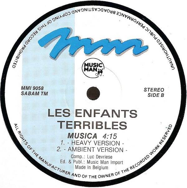 Sleeve and label mention Musica (Ambient Version) but the track is not present on the 12”
