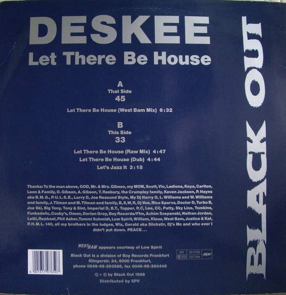 Matrix / Runout “LET THERE BE HOUSE” OUT 004 A-45 SST