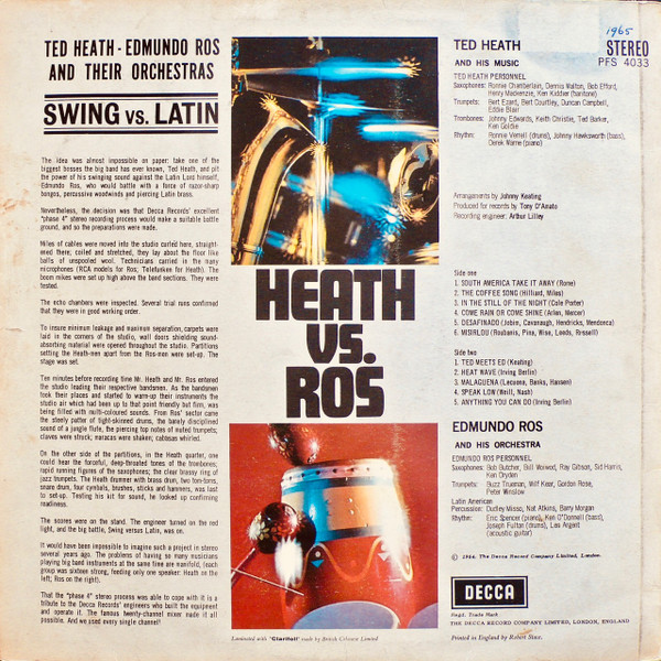Spine: Heath vs. Ros Ted Heath – Edmundo Ros and their Orchestras Decca Phase 4 Stereo PFS 4033