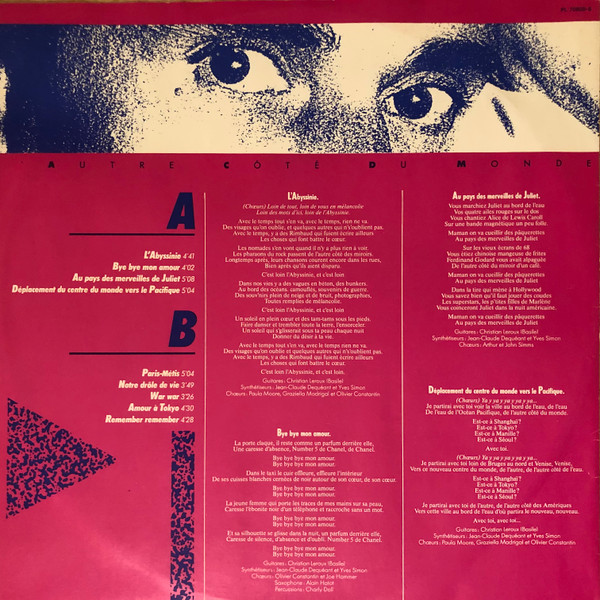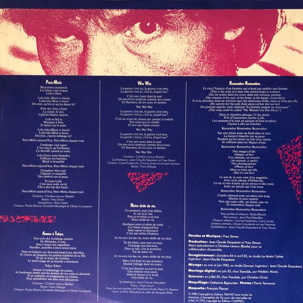 Recorded from October 1984 to April 1985 at Studio Le Matin Calme.