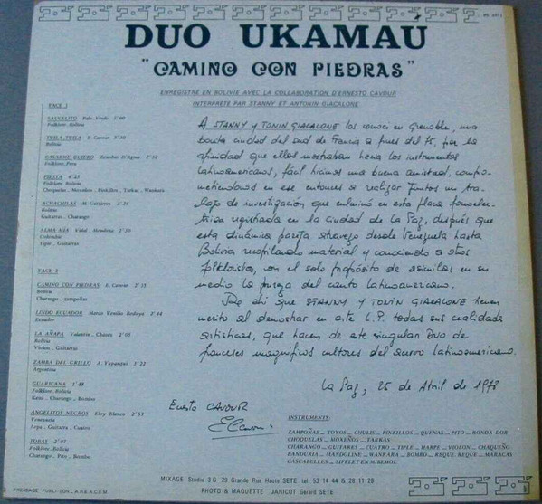 Enrigistré en Bolivie avec la collaboration d’Ernesto Cavour.