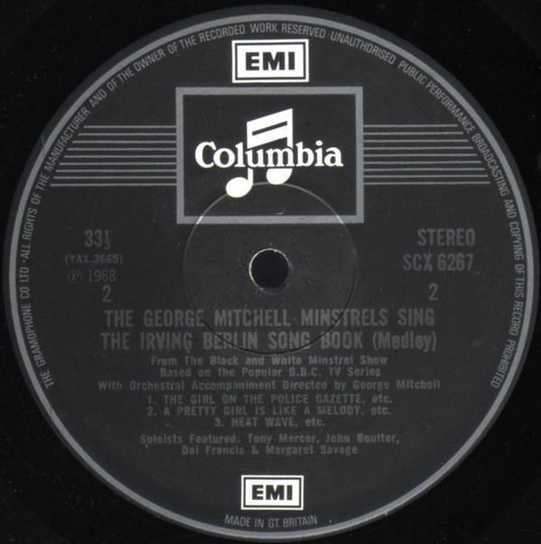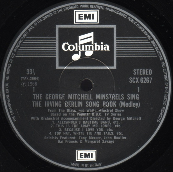 sleeve title : The George Mitchell Minstrels sing The Irving Berlin Song Book from The Black & White Minstrel Show