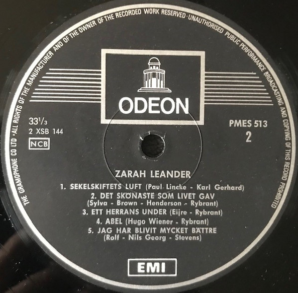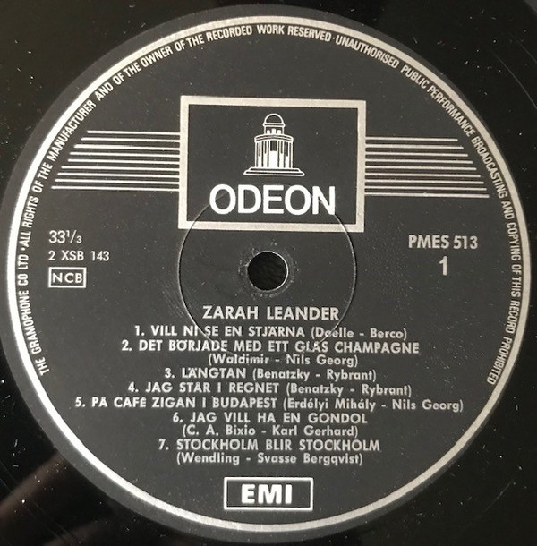 Inspelade för Odeon, Skandinaviska Grammophon Aktiebolaget, Stockholm