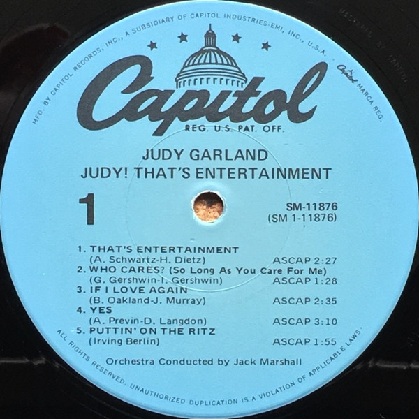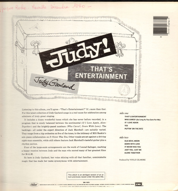 Back jacket, spine and labels have the title as, Judy! That’s Entertainment.