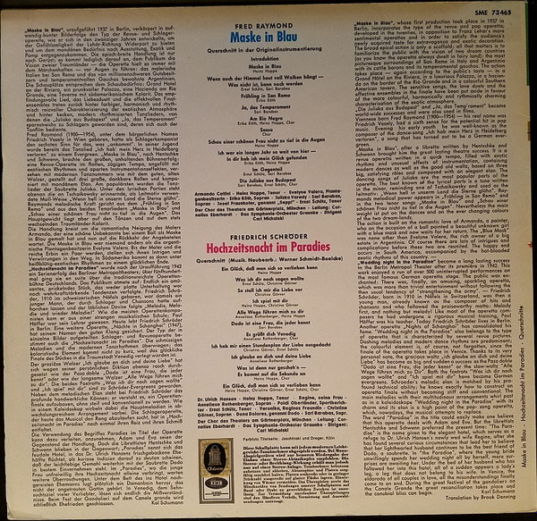 SME 73 465 – Fred Raymond, Friedrich Schröder – Maske In Blau / Hochzeitsnacht Im Paradies (Querschnitte) – (LP)