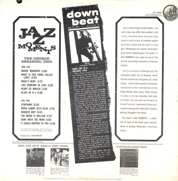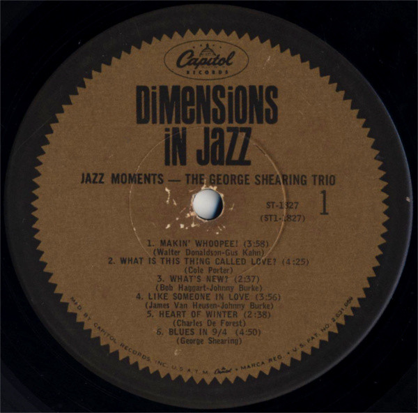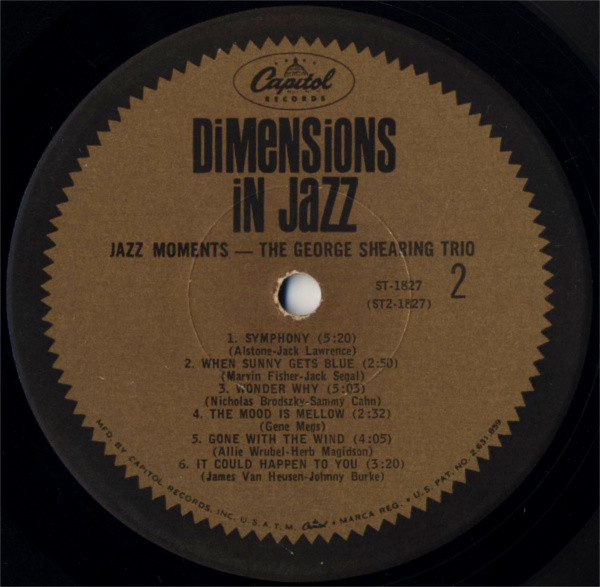 Some copies may have a gold “Dimensions In Jazz” sticker on the front cover.