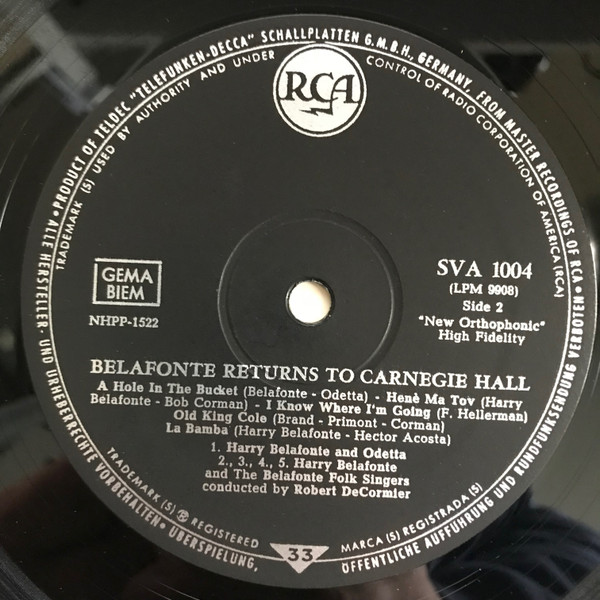 Belafonte Returns to Carnegie Hall, with Odetta and the Chad Mitchell Trio.