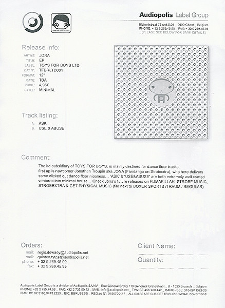 Catalog# etched in both runout grooves: TFBRLTD 01